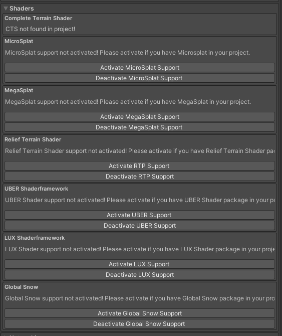 Under shaders we will activate the Microsplat support