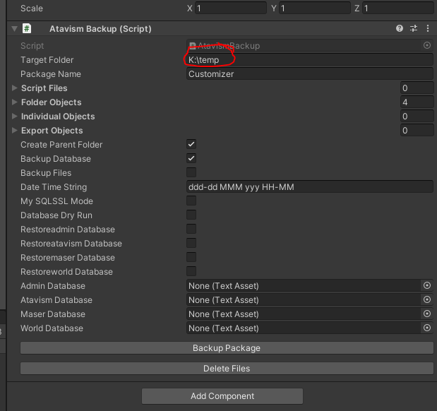 The addon keeps backup files in two locations, one is internally at the path Assets/HNGamers/AtavismBackup/Backups/SQL for easy loading into the restore feature. The second is in your external file location selected in the Addon.