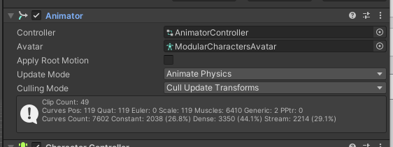 The Animator is the control center of the characters movement and contains all of the settings below.