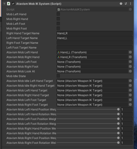 This is an Optional Script but will give your character some improvements in the animations when utilizing the IK handling system. This will allow feet and hands to be properly positioned on various items. See the Course on the Atavism IK Handling on how to use it.