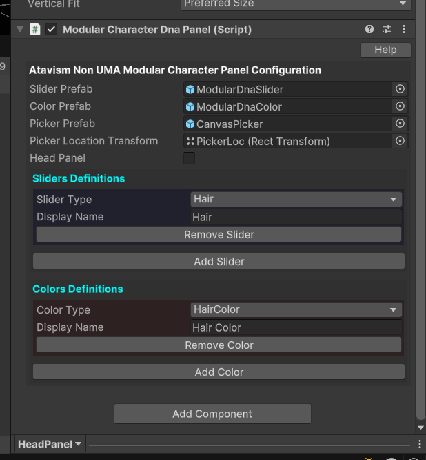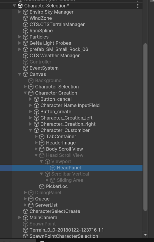 In order to add new sliders for the Modular Character system, you will need to modify the Character selection screen and expands the Canvas until you see the Head and Boby panels,which will be under the Head/Scroll view options.