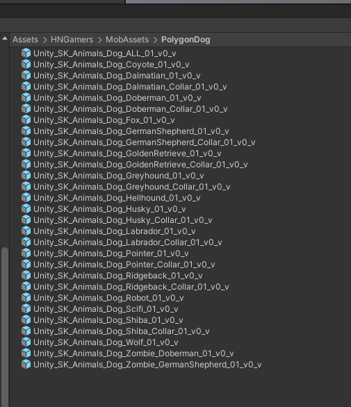 The system names the variants with a V so that you can tell these are a variant. This variant will be your root object when working with prefabs from your asset packs. Do not use the assets that come with the asset pack you purchase as any changes you make will be overwritten if you reimport the asset.
