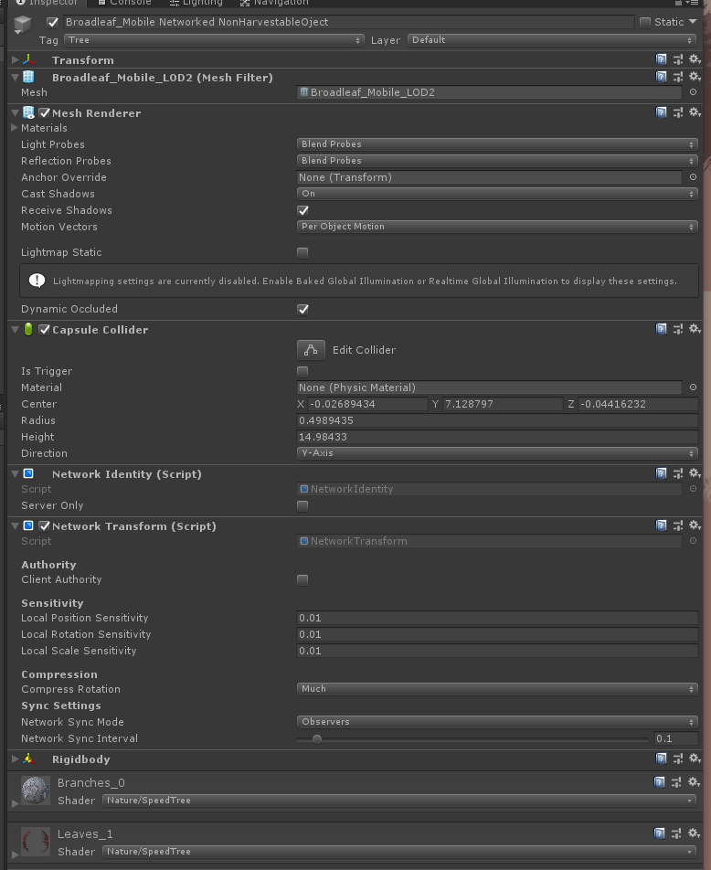 Third, we will duplicate this prefab and create one last prefab for our vegetation objects. These are the ones that will spawn when it falls on the server or breaks. You can feel free to use this or not, the system will detect its presence and use it if needed.